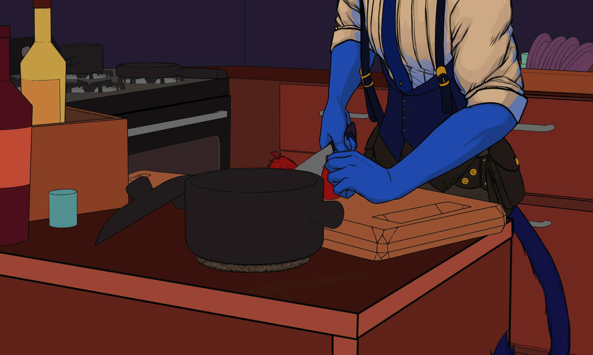 ❣ Bloodier Mary: ⅓ Fresh pressed tomato juice ⅓ Blood from recent organ donors* ⅙ Hot sauce (dragon pepper seeds brewed with vinegar, a pinch of sugar, and some tomato juice) ⅙ Vodka Splash of Worcestershire sauce Salt, pepper, and paprika